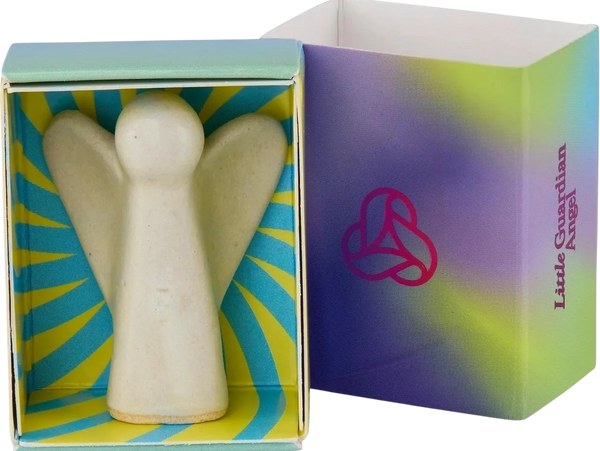 Tu Little Guardian Angel incluye tu angelito de cerámica hecha a mano, un manual y tu calcomanía para la "cadena de intenciones".